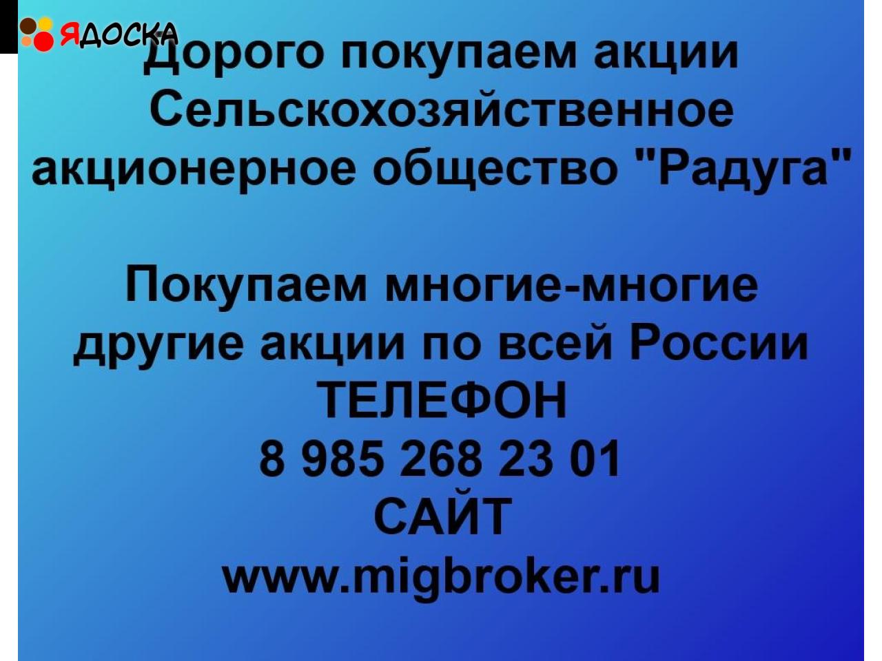 Для продажи акций можно обратиться в компанию «МигБрокер», скупающему акции «СХАО Радуга» в любом городе России
